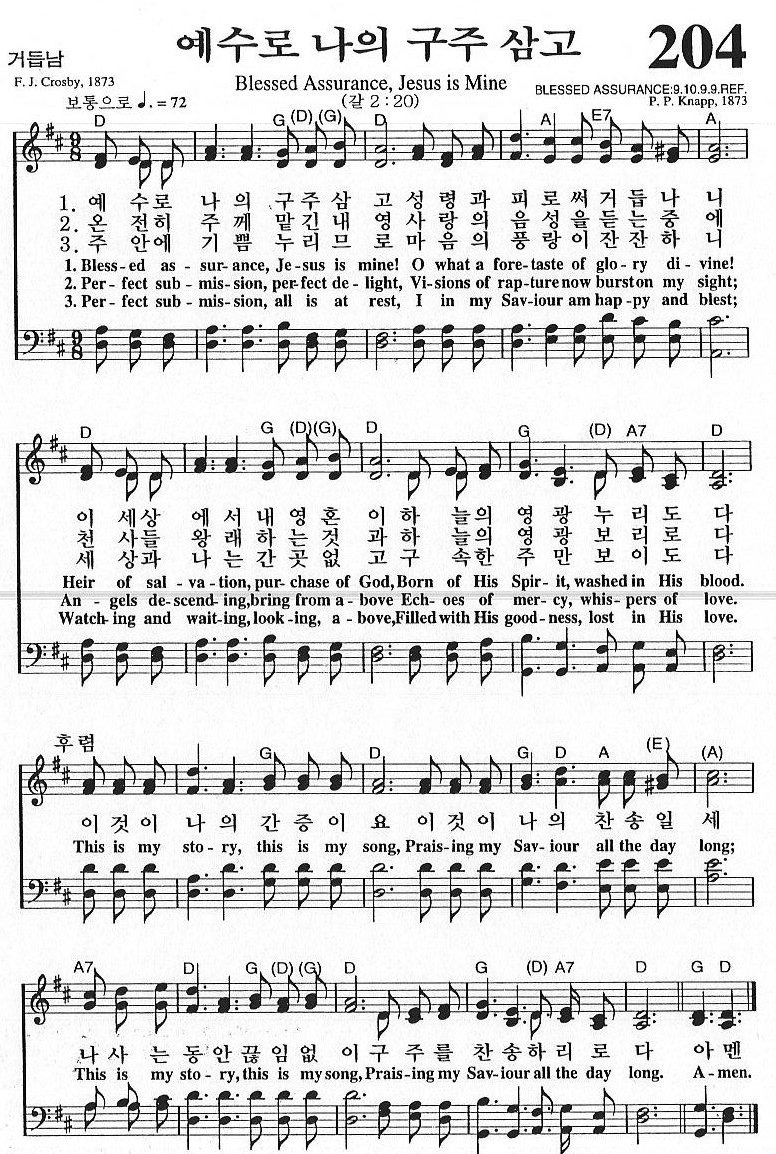 스크랩 예수로 나의 구주삼고 204 Blessed Assurance