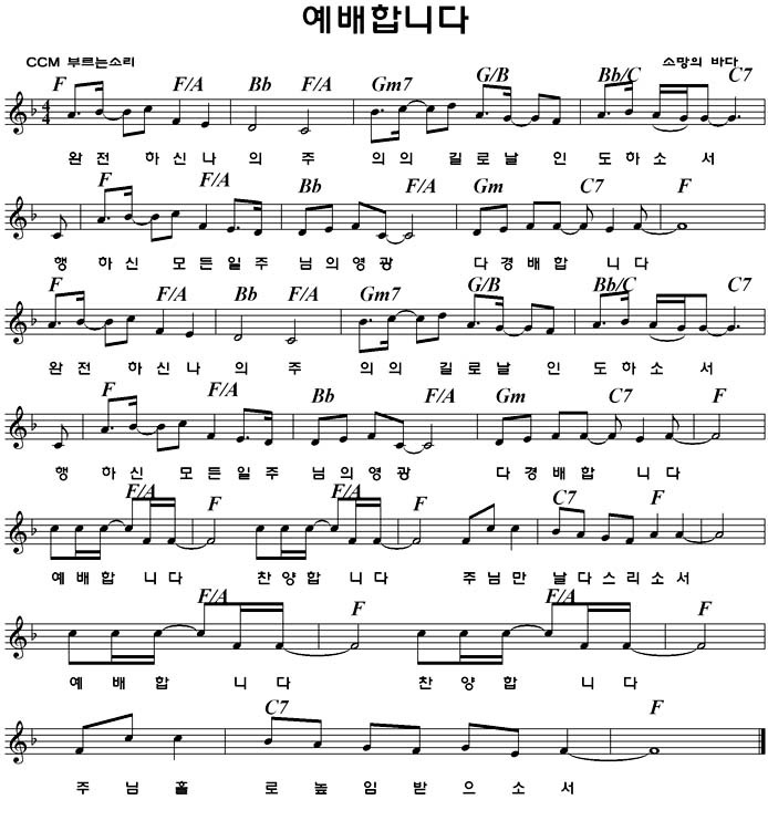 예배합니다 완전하신 나의 주 마커스 듣기 악보 가사 F 코드 Worship