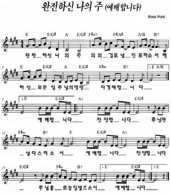 악보나눔 완전하신 나의 주 E F G 네이버 블로그