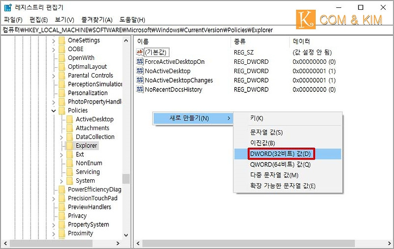 윈도우 10 바탕화면 아이콘 고정 레지스트리