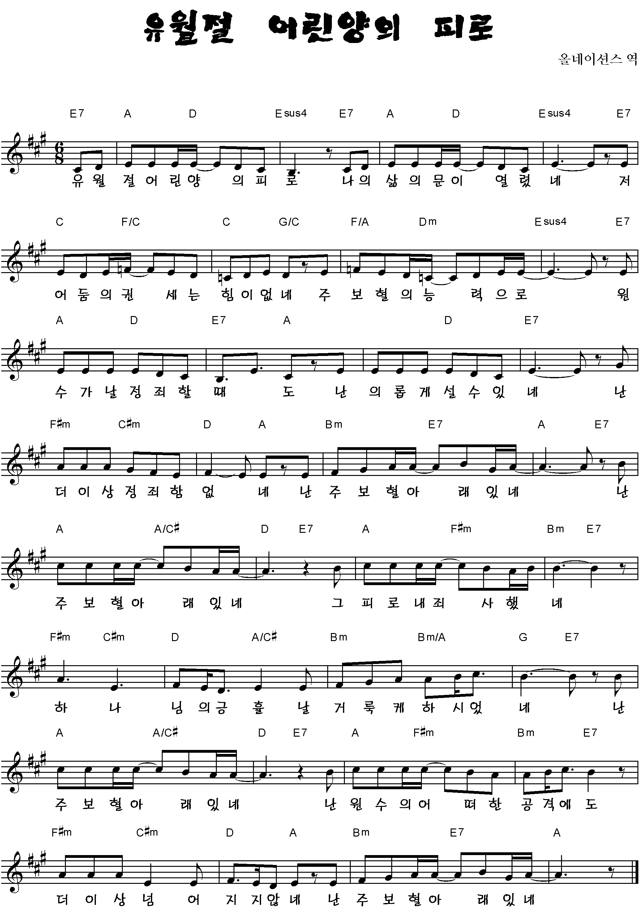 유월절 어린양의 피로 악보입니다 네이버 블로그