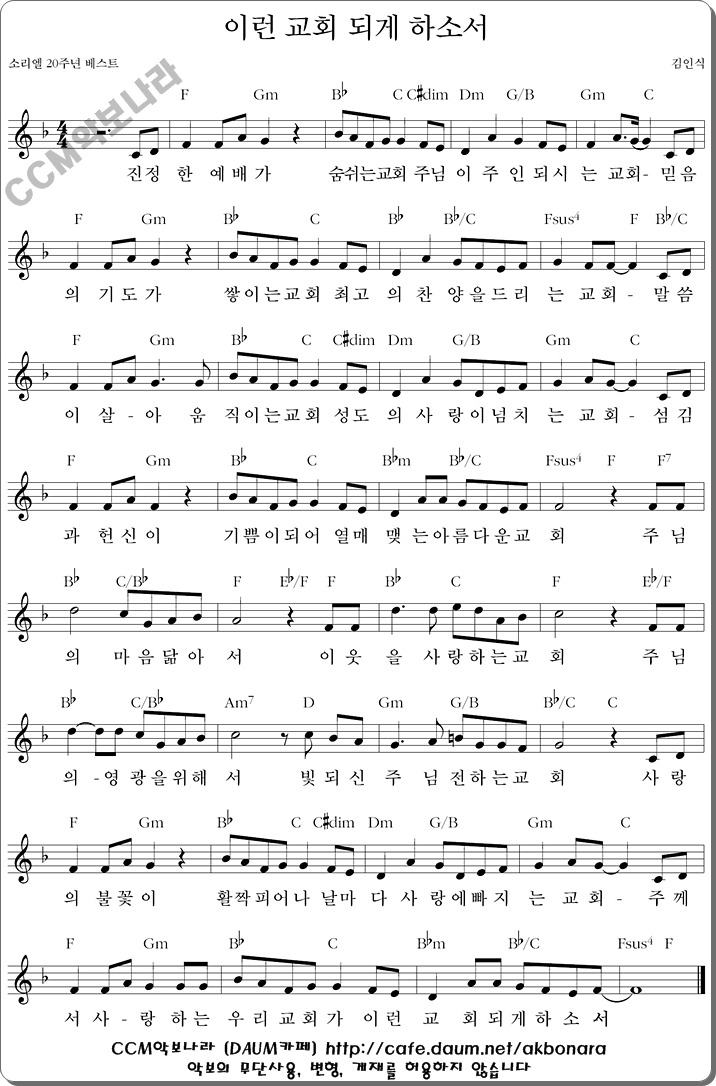 편곡을 했습니다 이런 교회 되게 하소서 자유게시판 찬양악보 정동섭 작곡가 카페