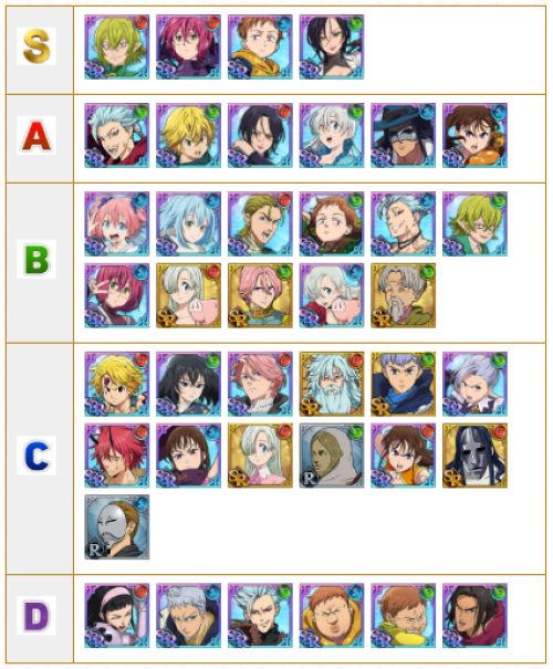 일곱개의대죄 New 캐릭터 등급표 많이 바뀌었다 6월17일ver 구스마일 Youtube
