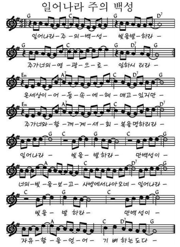 일어나라 주의 백성 악보 가사 Ppt Wide 포함