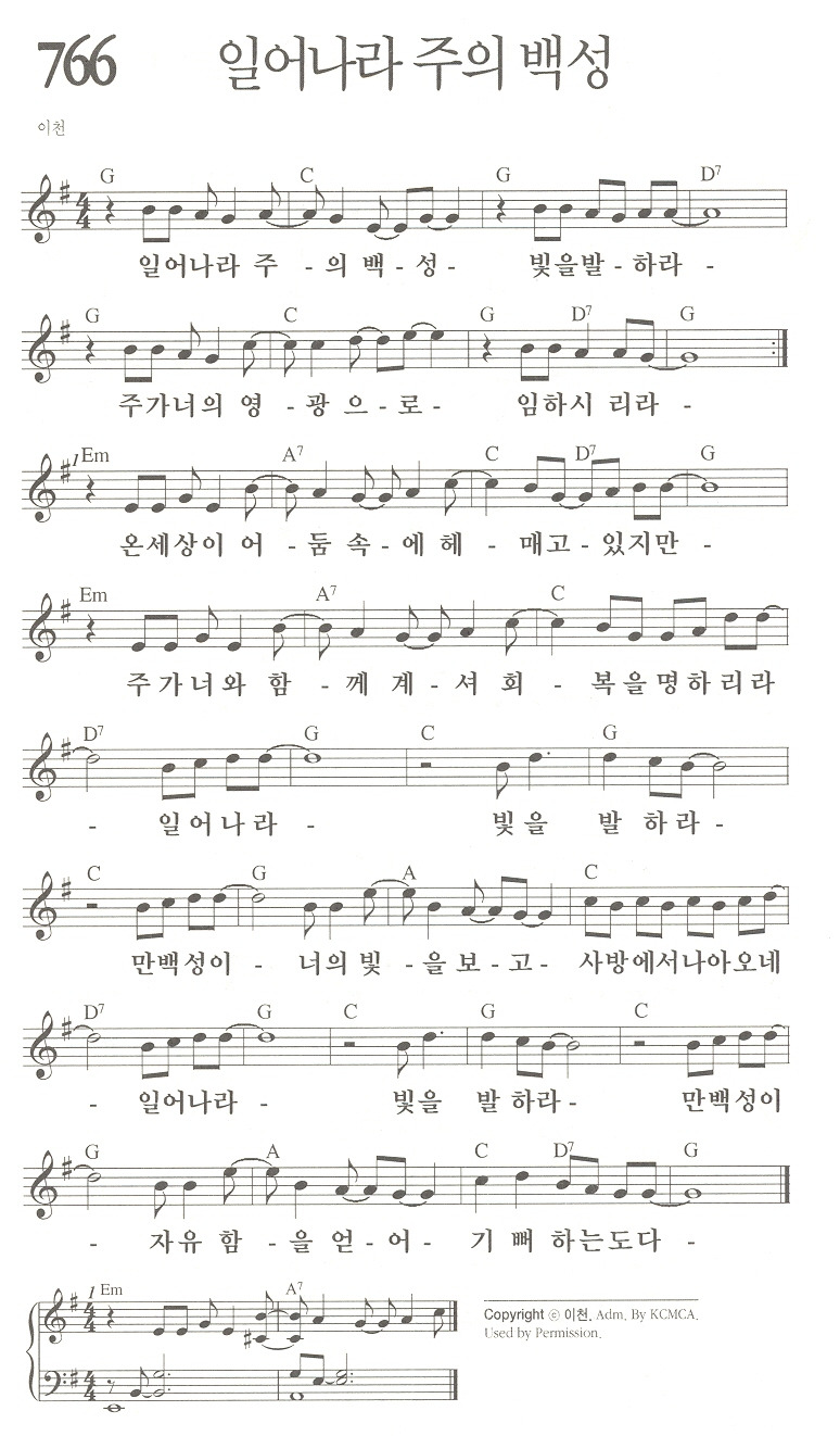 일어나라 백성들아 빛을 발하라 내가 너희 영광으로 Nwc Ppt 악보 가사