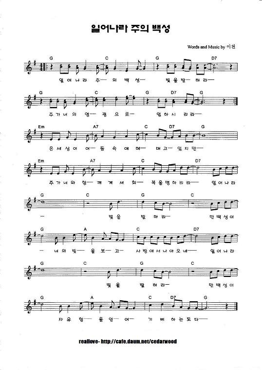 Ccm악보 일어나라 주의백성 G 리하모니 악보 네이버 블로그
