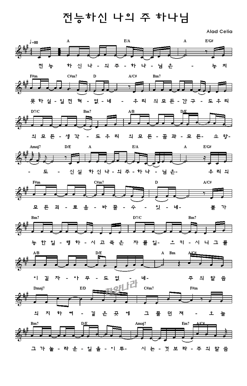 Ccm 전능하신 나의 주 하나님은 악보 악보바다