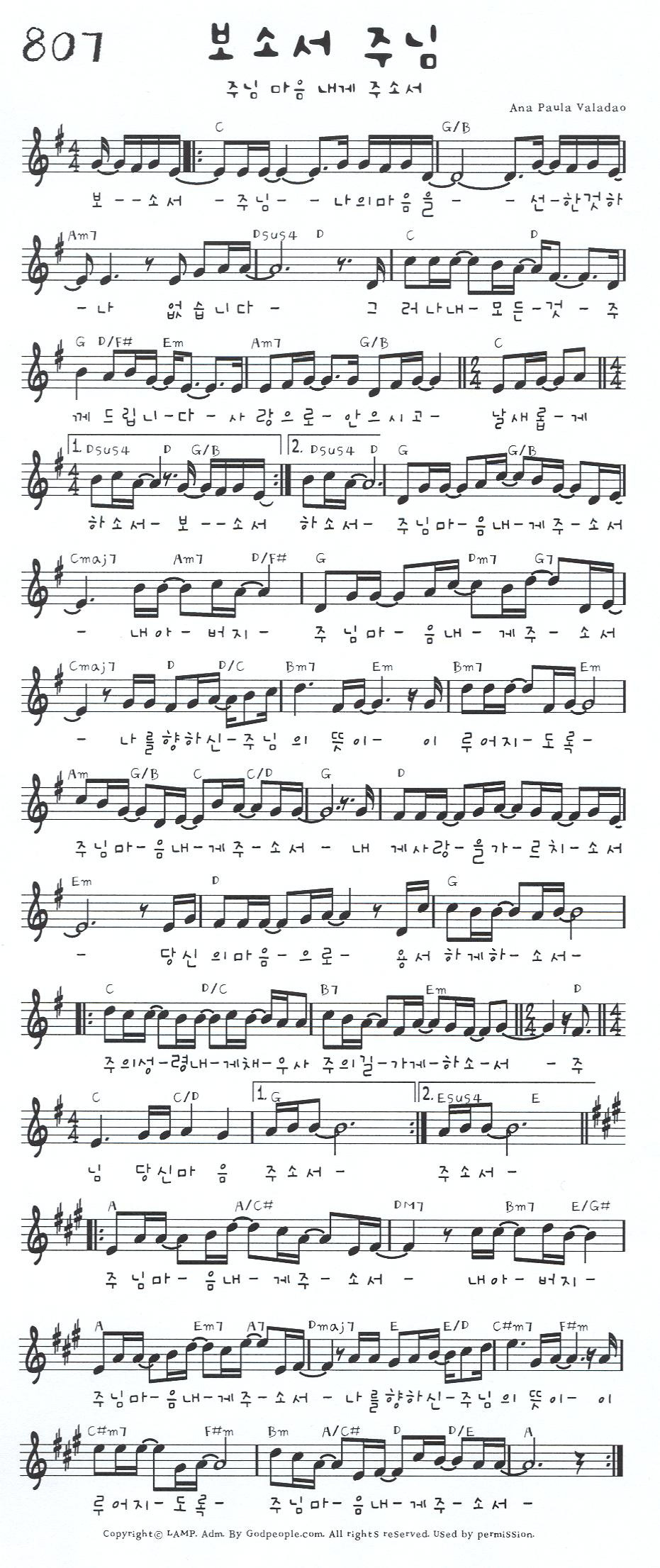 내 영혼이 은총입어 G코드