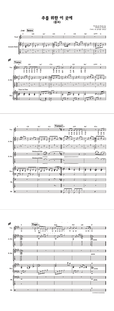 악보 게시판 임선호 주를 위한 이곳에 반주 악보 By 천정아