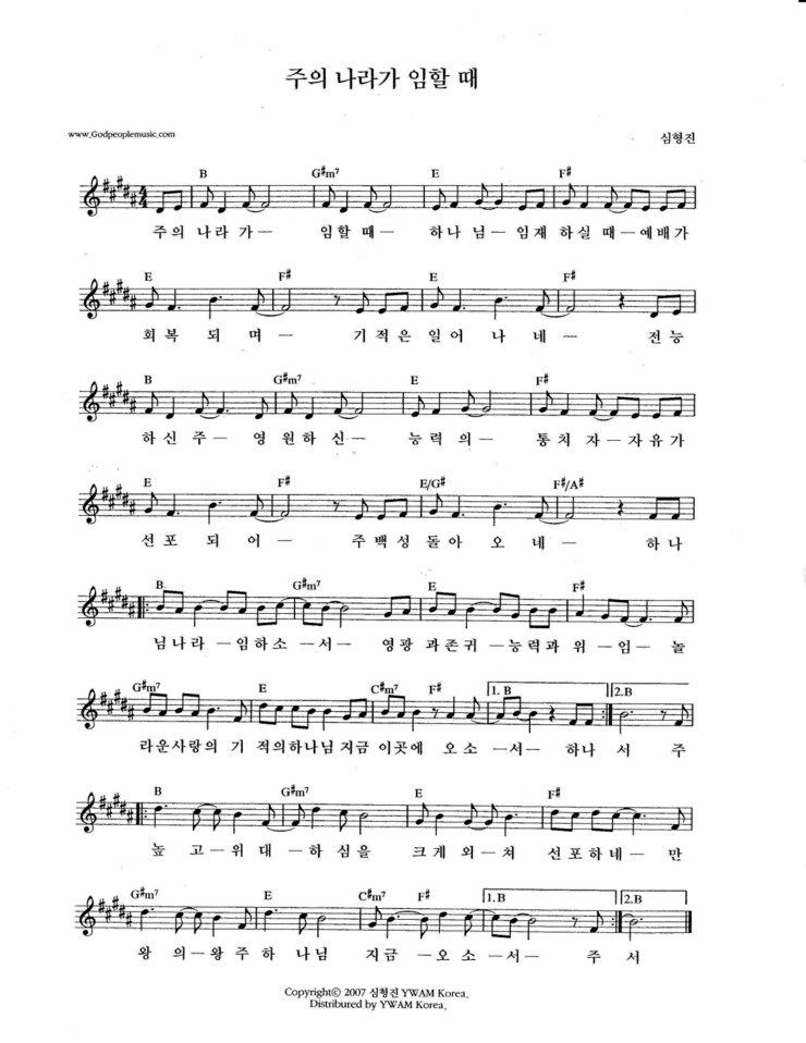 Ccm 악보전문 악보엘 주의 나라가 임할 때