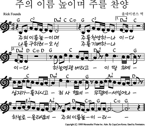 휄로쉽 악보 자료 주의 이름 높이며 주를 찬양