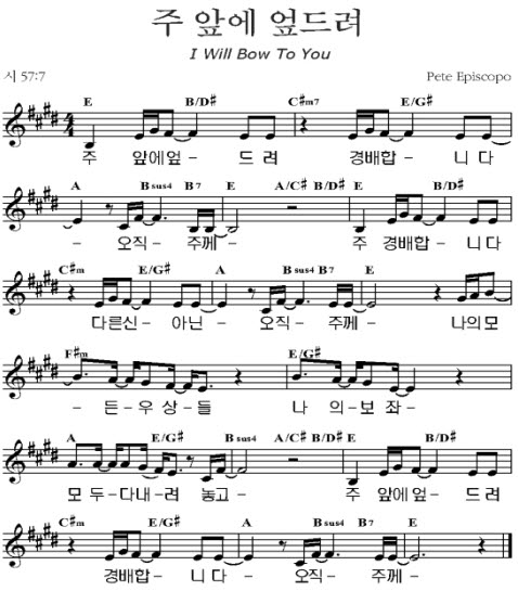 주 앞에엎드려 i will bow to you 주 앞에 엎드려 경배합니다 오직 주께 주 경배합니다 다른신 아닌 오직 주께 나의 모든 우상들 나의 보좌 모두 다 내려놓고 주 앞에 엎드려 경배합니다 오직 주께.
