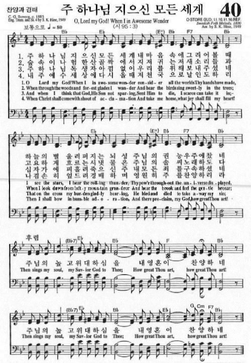 스크랩 How Great Thou Art 주하나님 지으신 모든 세계 영어 찬송가 악보 영상