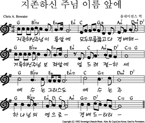 지존하신주님이름앞에 악보 영상 가사 어노인팅 마커스 전하세예수 G코드