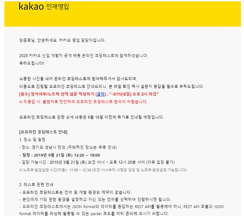카카오 1차 온라인 코딩테스트 후기 17 09 16