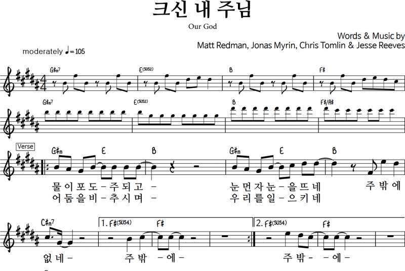 Our God 크신 내 주님 Chris Tomlin 악보 다양한 키 네이버 블로그