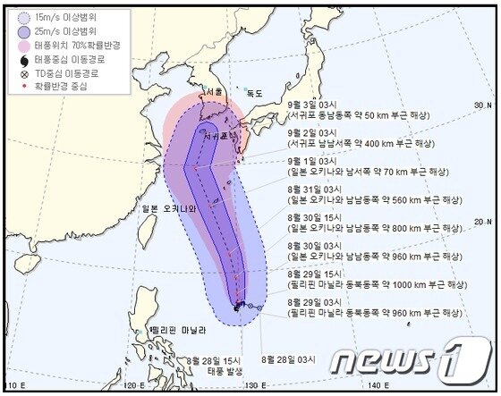 9호 태풍 마이삭 2일 제주 상륙 이후 블라디보스톡으로 빠질 듯 뉴스 동아닷컴