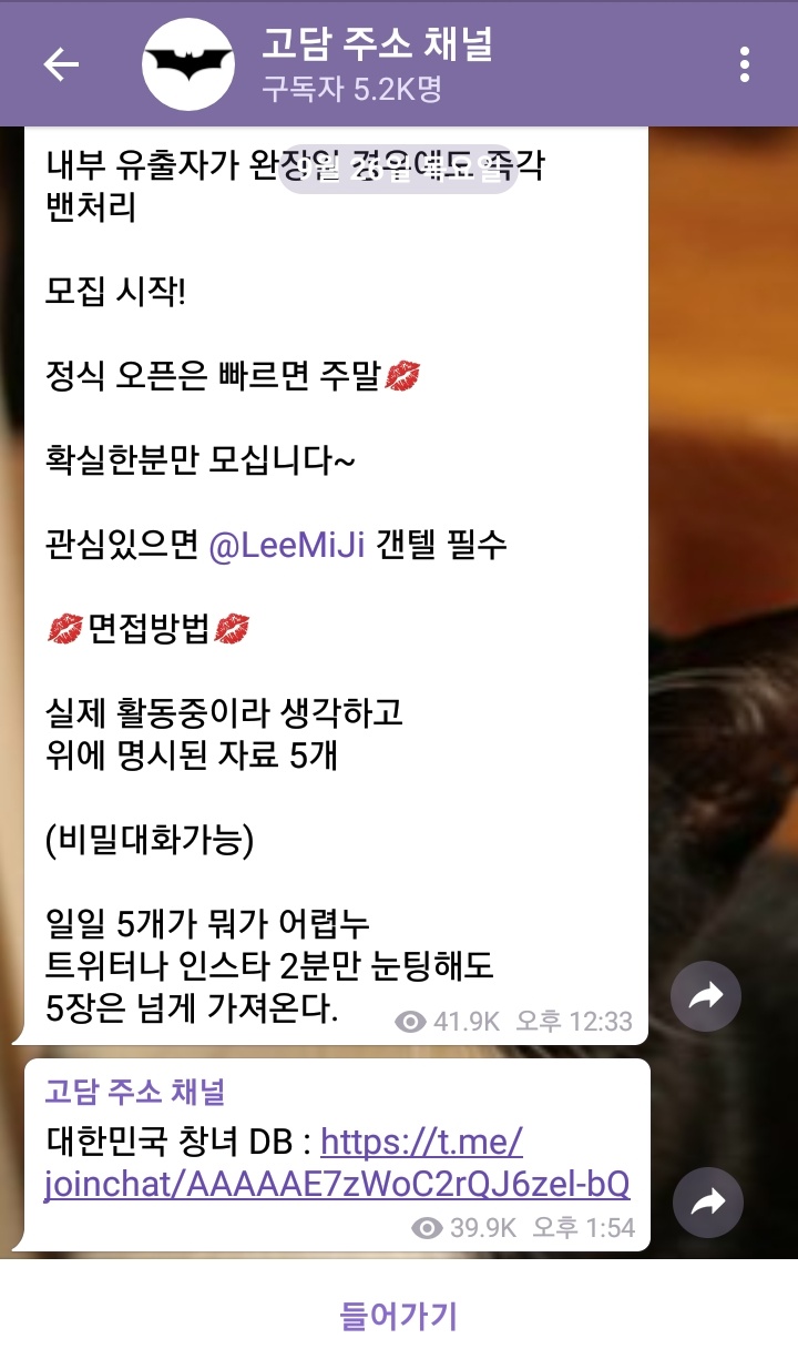 남혜리 Hyeri Nam On Twitter Rt 텔레그램 단톡방 성착취 기사를 읽고 관련 키워드로 검색해봤습니다 여전히 관련 채널이 남아있음을 확인할 수 있었습니다 맨 위에거 Https T Co Ba5uhppp1c 채널에 입장하지 않아도 우측상단 점 세개를 눌러 신고 가능