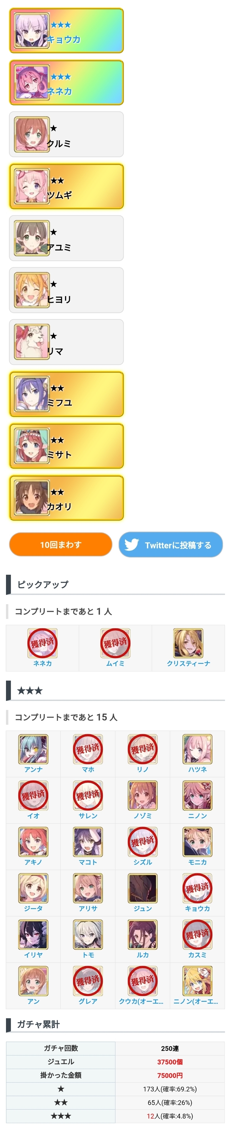 렘 291회차에뜬거 기분안좋아서 가챠시뮬해봤는데 자유 게시판 프린세스 커넥트 Re Dive 공식카페