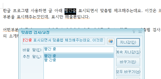 한컴오피스 한글 프로그램 빨간줄 없애기 맞춤법 도우미
