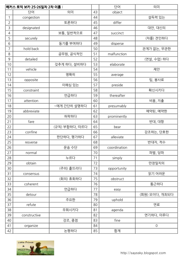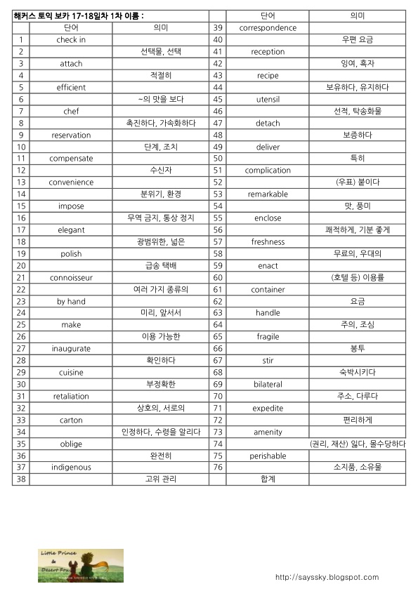 해커스토익보카 노랭이 단어 테스트용 네이버 블로그