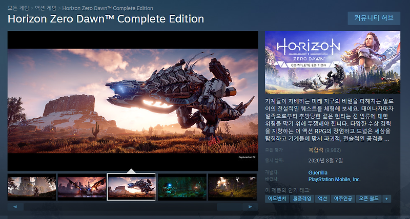 호라이즌 제로던 그래픽설정법 스팀게임 Pc게임 퀘이사존