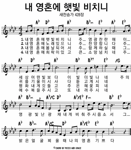 악보 게시판 찬송가428장 내 영혼에 햇빛 비치니 반주악보 By 천정아
