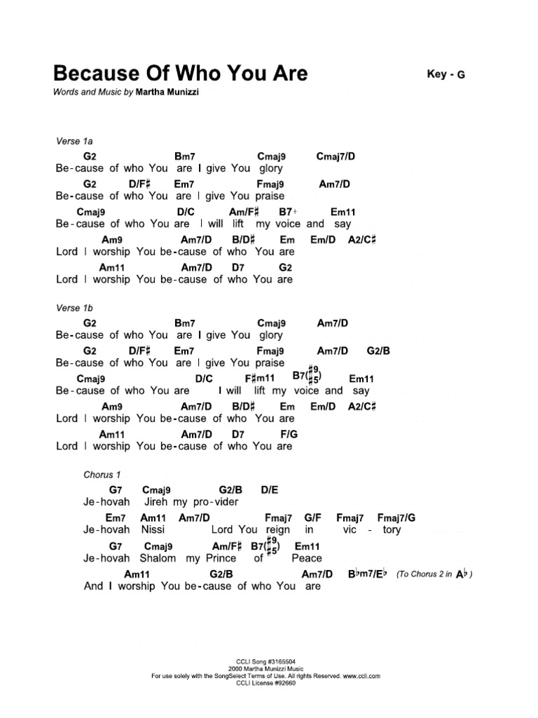 Because Of Who You Are Chords G Pdf