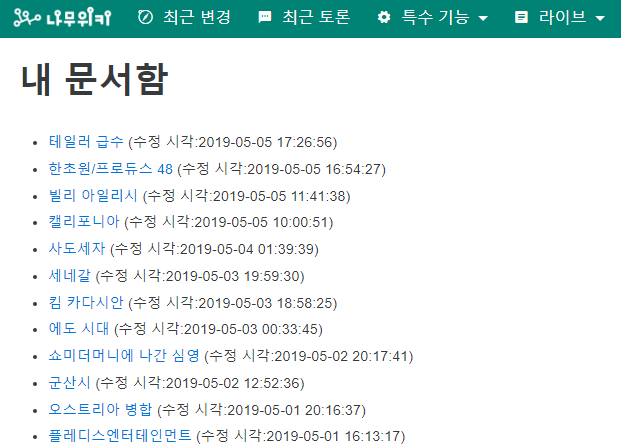 북마크 정리 20190505 나의 나무위키 이용 실태 1 엔터테인먼트 네이버 블로그