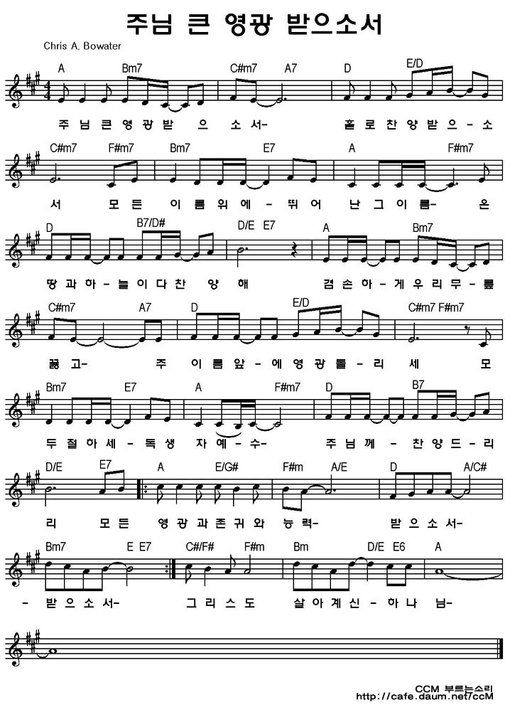 악보 게시판 Chris Bowater 주님 큰 영광 받으소서 반주 악보 By 천정아