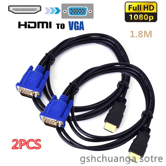 2 Pcs 1 8m Hdmi To Vga Cable Hd 1080p Hdmi Male To Vga Male Video Converter Adapter For Pc Laptop Shopee Philippines