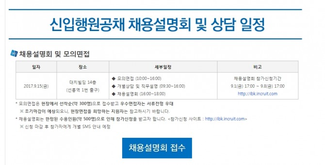 2017년 하반기 Ibk기업은행 채용 정보
