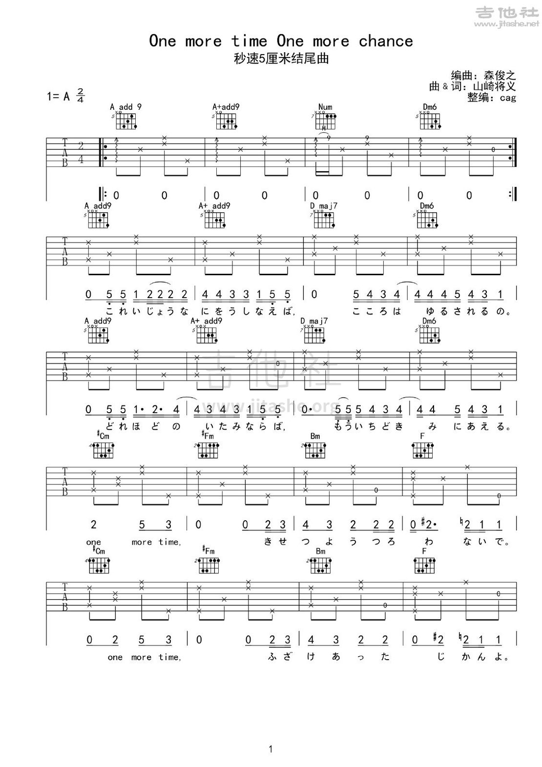 秒速五厘米 One More Time One More Chance吉他谱 图片谱 弹唱 动漫游戏 Acg