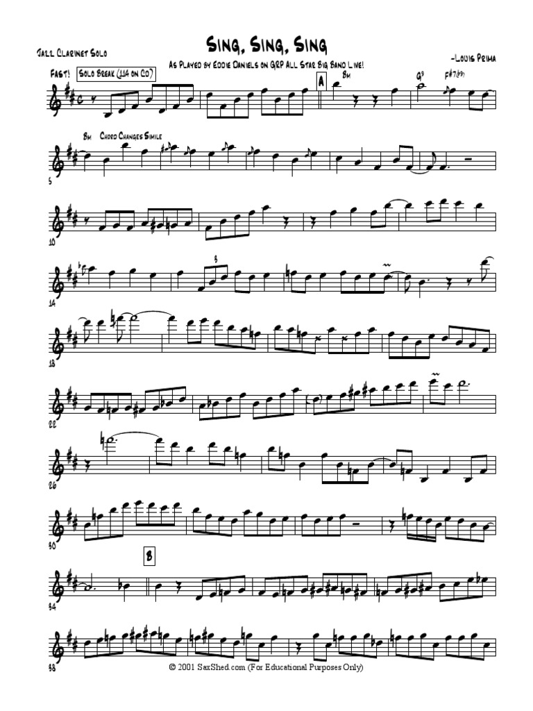 Sing Sing Sing Benny Goodman Clarinet Solo Pdf Pdf Le Jazz Musique Afro Americaine