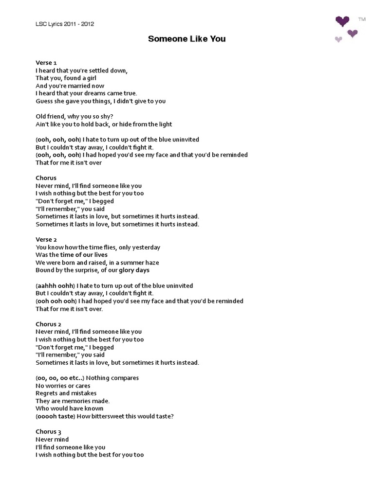 Someone Like You Lsc Lyrics 2011 2012 Leisure