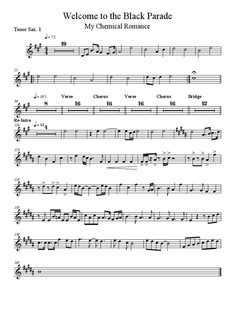 Black Parade Alto Sax Musical Forms Musical Compositions