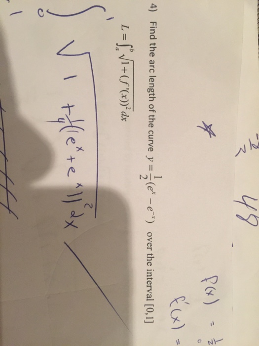 Solved Find The Arc Length Of The Curve Y 1 2 E X E X Chegg Com