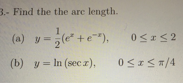 Solved Find The Are Length A Y 1 2 E X E X 0 L Chegg Com