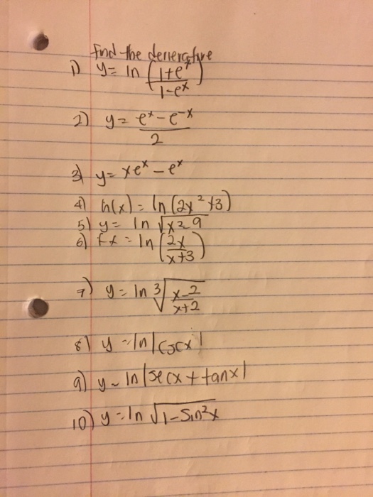 Solved Find The Derivative 1 Y In 1 E X 1 E X 2 Y E Chegg Com
